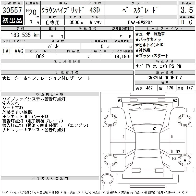 | BASE GRADE | DAA-GWS204 | 2GR-FSE | FR | CVT | 3456cc | 296ps(218kW)/6400rpm | AИ-95 | 6 190 000 | |