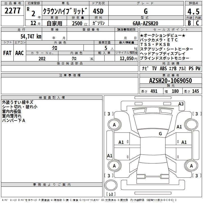 | G | 6AA-AZSH20 | A25A-FXS | FR | CVT | 2487cc | 184ps(135kW)/6000rpm | AИ-92 | 5 740 000 | |