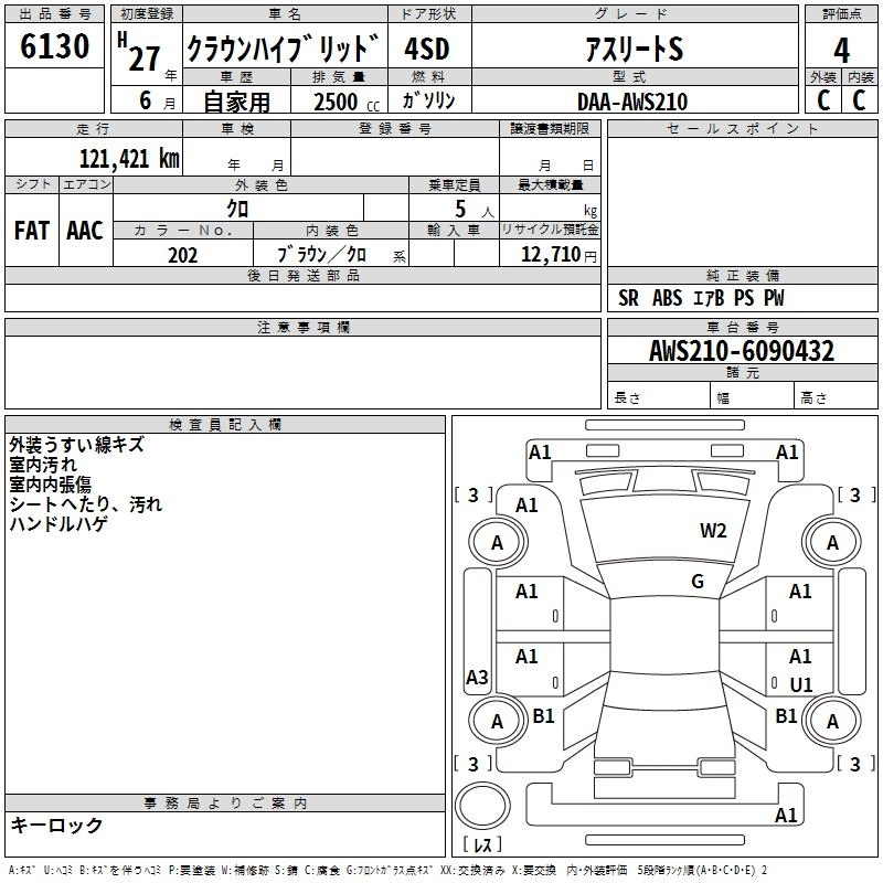 TOYOTA CROWN HYBRID 2015 г., лот № 6130