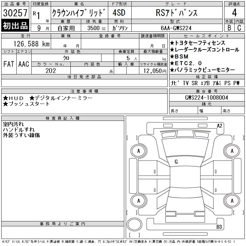 | RS ADVANCE | 6AA-GWS224 | 8GR-FXS | FR | CVT | 3456cc | 299ps(220kW)/6600rpm | AИ-95 | 7 034 500 | |