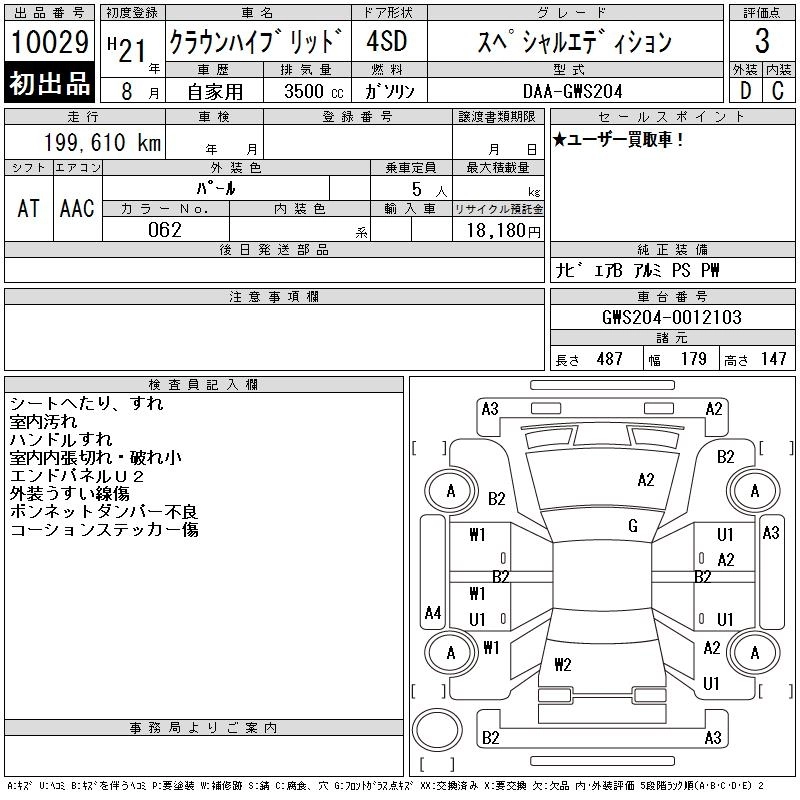 | SPECIAL EDITION | DAA-GWS204 | 2GR-FSE | FR | CVT | 3456cc | 296ps(218kW)/6400rpm | AИ-95 | 5 400 000 |
