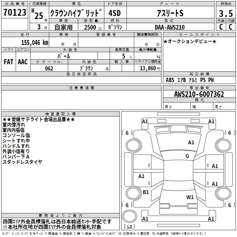 TOYOTA CROWN HYBRID 2013 г., лот № 70123