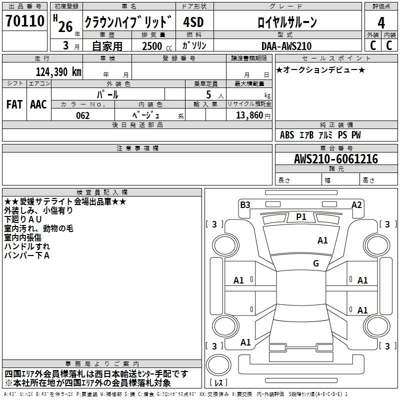 | ROYAL | DAA-AWS210 | 2AR-FSE | FR | CVT | 2493cc | 178ps(131kW)/6000rpm | AИ-92 | 4 217 143 |