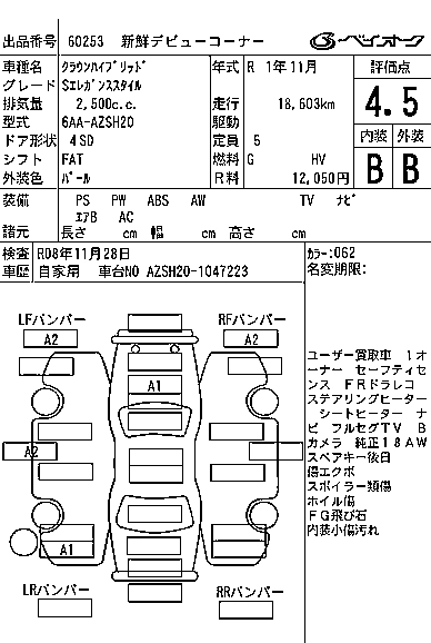 | S ELEGANCE STYLE | 6AA-AZSH20 | A25A-FXS | FR | CVT | 2487cc | 184ps(135kW)/6000rpm | AИ-92 | 5 196 960 |