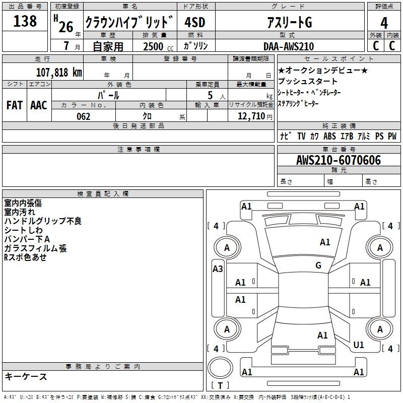 | ROYAL | DAA-AWS210 | 2AR-FSE | FR | CVT | 2493cc | 178ps(131kW)/6000rpm | AИ-92 | 4 217 143 |