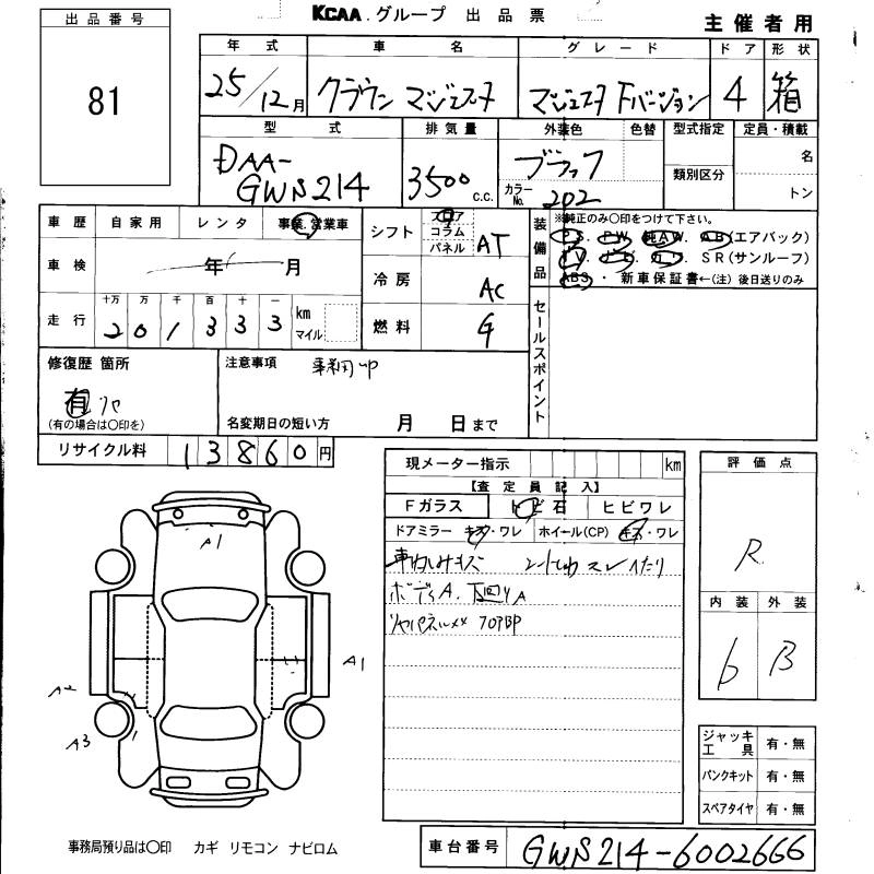 | F VERSION | DAA-GWS214 | 2GR-FXE | FR | CVT | 3456cc | 292ps(215kW)/6000rpm | AИ-95 | 6 700 000 | |
