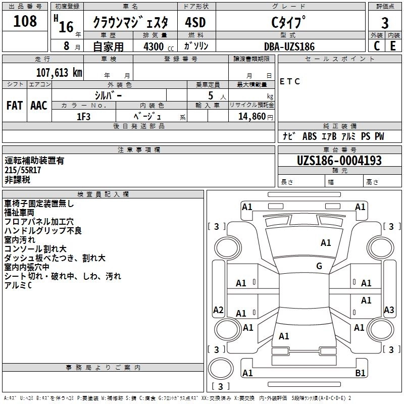 | C TYPE | DBA-UZS186 | 3UZ-FE | FR | 6AT | 4292cc | 280ps(206kW)/5600rpm | AИ-95 | 6 090 000 | |