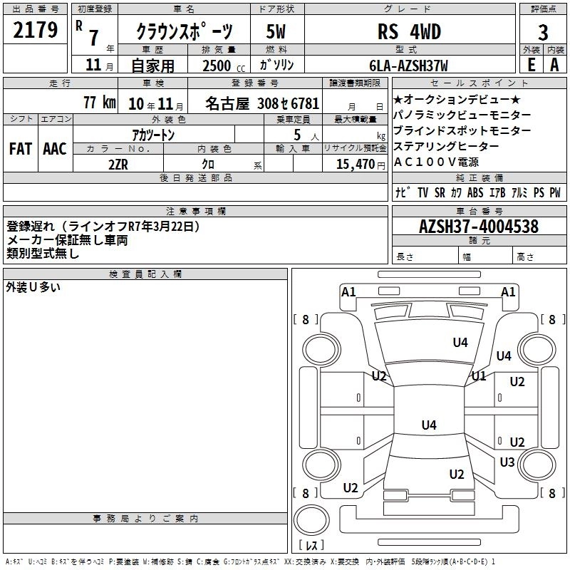 Статус выставлен на аукцион Лот 2179 Аукцион TAA Chubu Дата аукциона 29.01.2026
