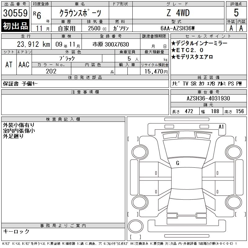 TOYOTA CROWN SPORT 2024 г., лот № 30559