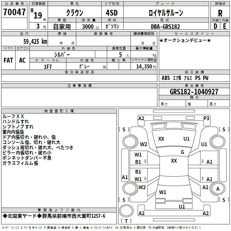 | ROYAL EXTRA I-FOUR Q PACKAGE PREMIUM EDITION | DBA-GRS181 | 4GR-FSE | Full-time 4WD | 5AT | 2499cc | 215ps(158kW)/6400rpm | AИ-95 | 4 420 500 | |