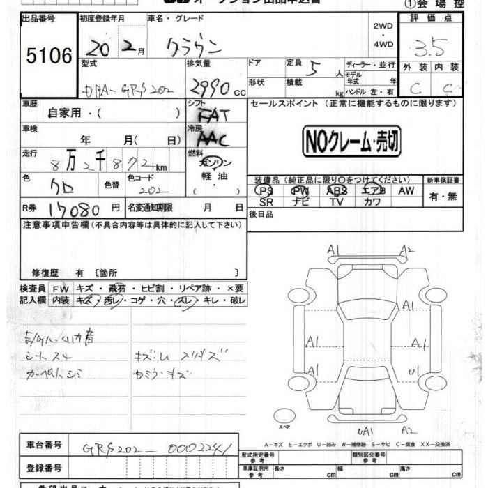 | ROYAL SALOON G OTTOMAN PACKAGE | DBA-GRS202 | 3GR-FSE | FR | 6AT | 2994cc | 256ps(188kW)/6200rpm | AИ-95 | 5 350 000 | |