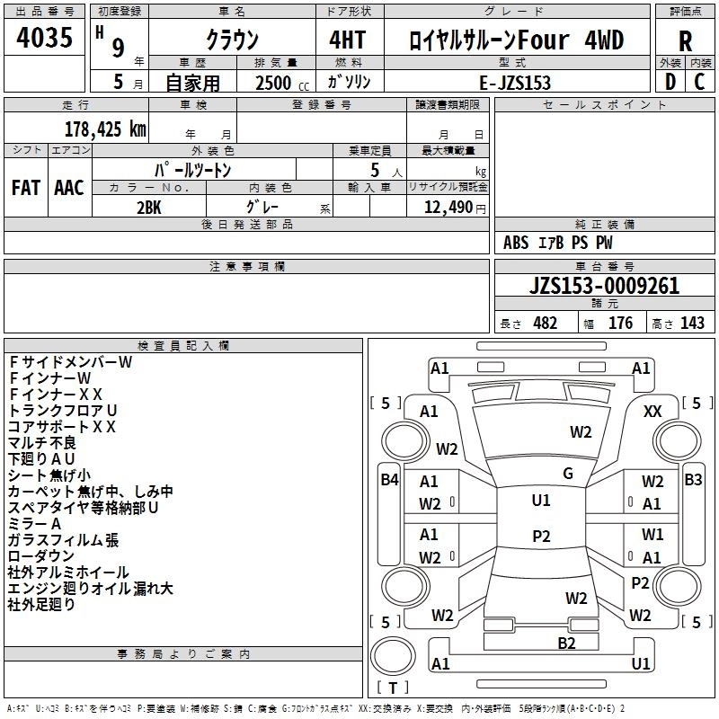 | ROYAL EXTRA FOUR | E-JZS153 | 1JZ-GE | Full-time 4WD | 4AT | 2491cc | 200ps(147kW)/6000rpm | AИ-95 | 3 420 000 | |