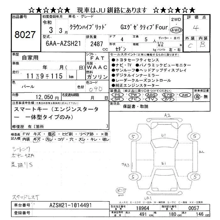 TOYOTA CROWN 2021 г., лот № 8027