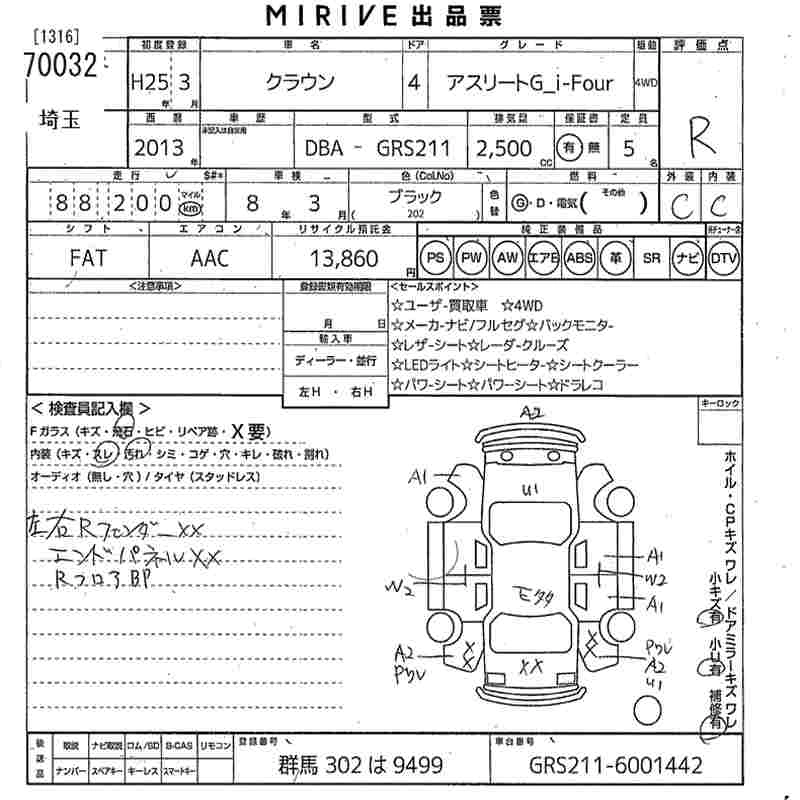 | ATHLETE G I-FOUR REBORN PINK | DBA-GRS211 | 4GR-FSE | Full-time 4WD | 6AT | 2499cc | 203ps(149kW)/6400rpm | AИ-92 | 5 700 000 |