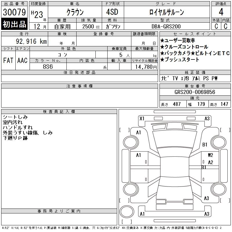 | 3.0 ROYAL SALOON ANNIVERSARY EDITION | DBA-GRS202 | 3GR-FSE | FR | 6AT | 2994cc | 256ps(188kW)/6200rpm | AИ-95 | 4 800 000 | |