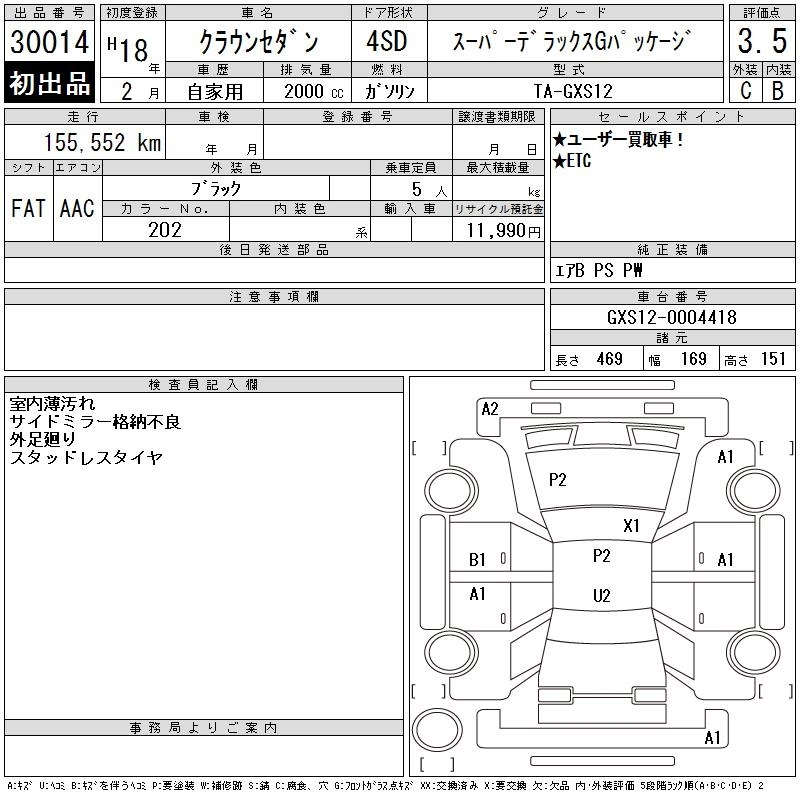 | ROYAL SALOON 60TH SPECIAL EDITION | DBA-GRS182 | 3GR-FSE | FR | 6AT | 2994cc | 256ps(188kW)/6200rpm | AИ-95 | 4 420 500 | |
