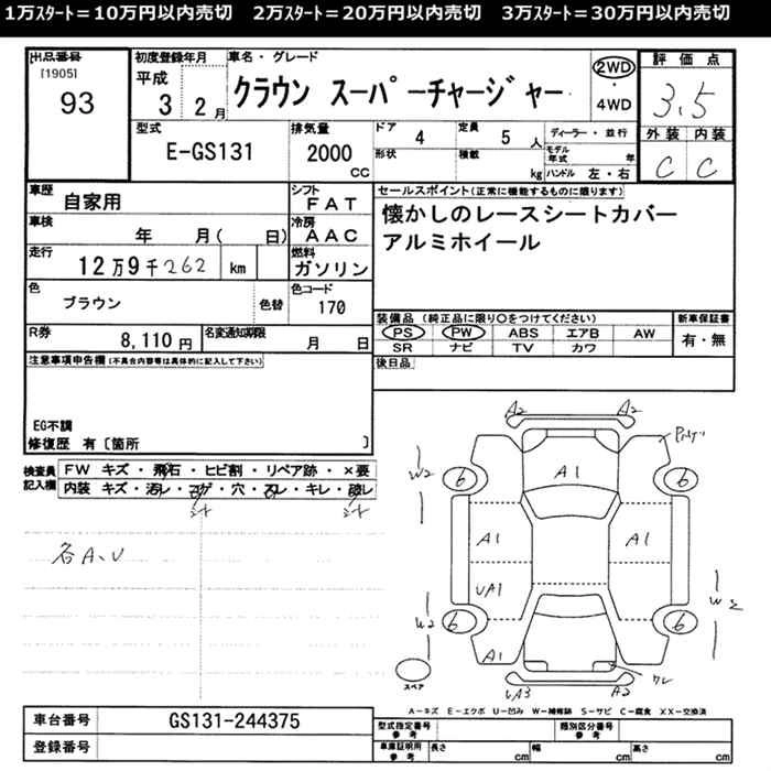 | SUPER DELUXE | E-GS130 | 1G-FE | FR | 4AT | 1988cc | 135ps(99kW)/5600rpm | AИ-92 | 2 245 000 | |