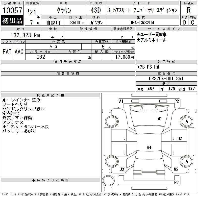 | 3.0 ROYAL SALOON ANNIVERSARY EDITION | DBA-GRS202 | 3GR-FSE | FR | 6AT | 2994cc | 256ps(188kW)/6200rpm | AИ-95 | 4 630 000 | |