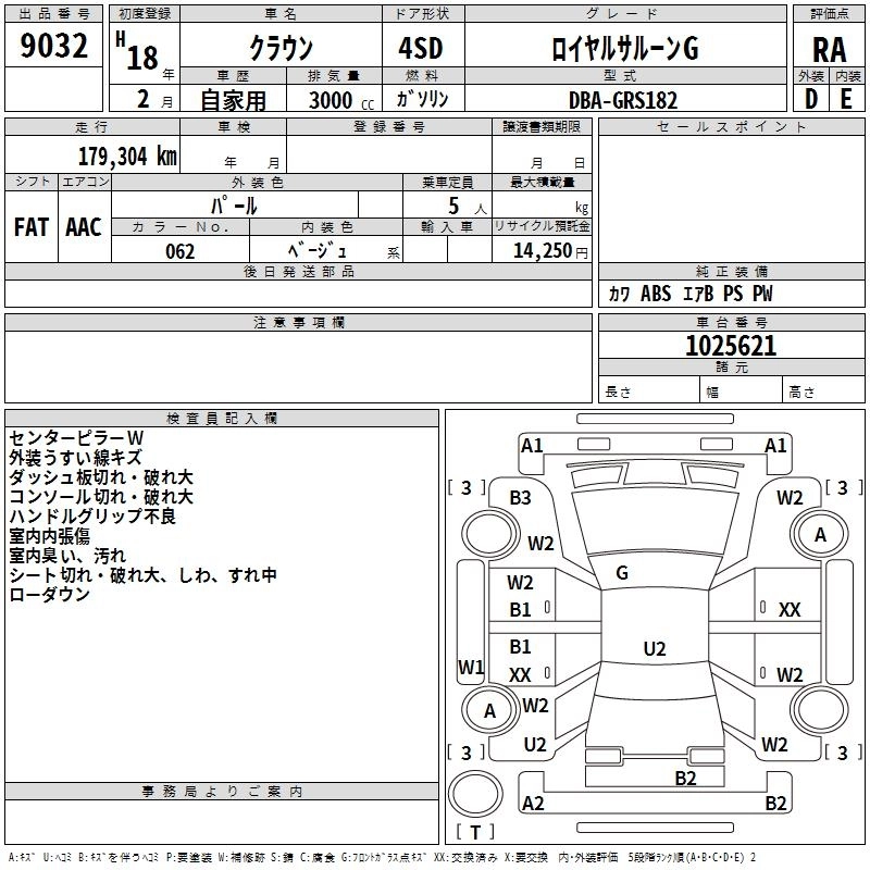 ROYAL EXTRA I-FOUR Q PACKAGE 60TH SPECIAL EDITION DBA-GRS181 4GR-FSE Full-time 4WD 5AT 2499cc 215ps(158kW)/6400rpm AИ-95 4 452 000