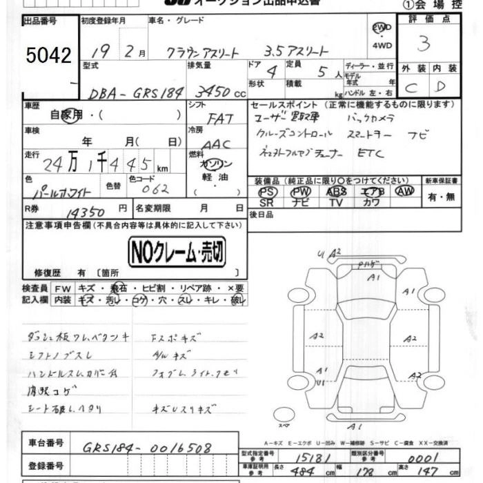 | ROYAL EXTRA I-FOUR Q PACKAGE PREMIUM EDITION | DBA-GRS181 | 4GR-FSE | Full-time 4WD | 5AT | 2499cc | 215ps(158kW)/6400rpm | AИ-95 | 4 420 500 | |