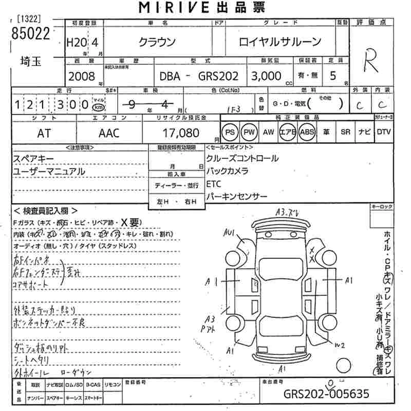 | ROYAL SALOON G | DBA-GRS202 | 3GR-FSE | FR | 6AT | 2994cc | 256ps(188kW)/6200rpm | AИ-95 | 5 280 000 | |