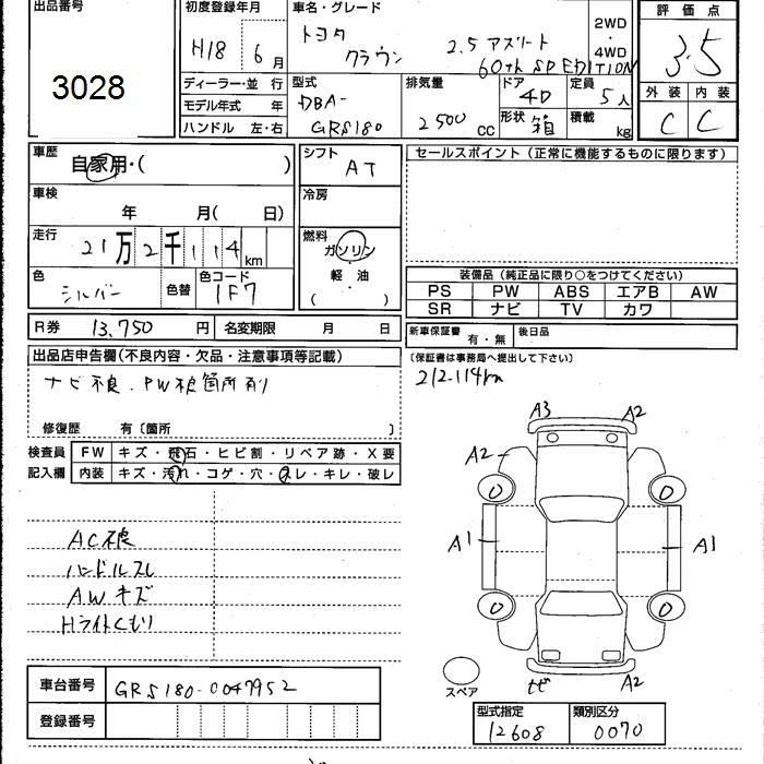 | ROYAL SALOON 60TH SPECIAL EDITION | DBA-GRS180 | 4GR-FSE | FR | 6AT | 2499cc | 215ps(158kW)/6400rpm | AИ-95 | 4 116 000 |