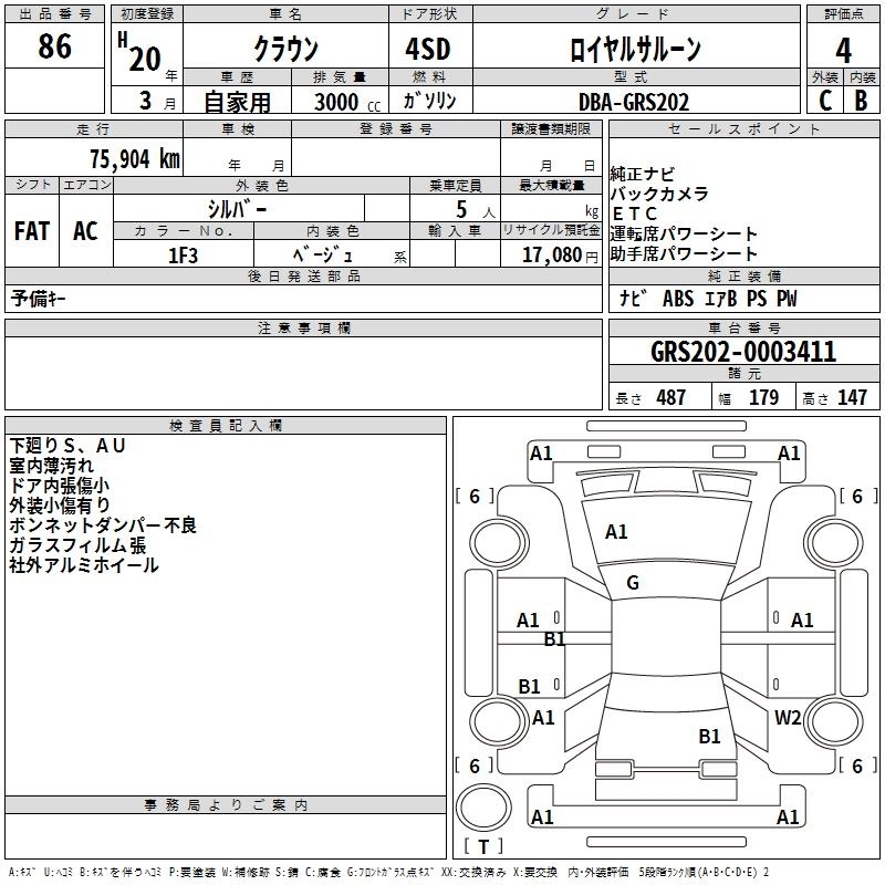 | ROYAL SALOON | DBA-GRS202 | 3GR-FSE | FR | 6AT | 2994cc | 256ps(188kW)/6200rpm | AИ-95 | 4 580 000 | |