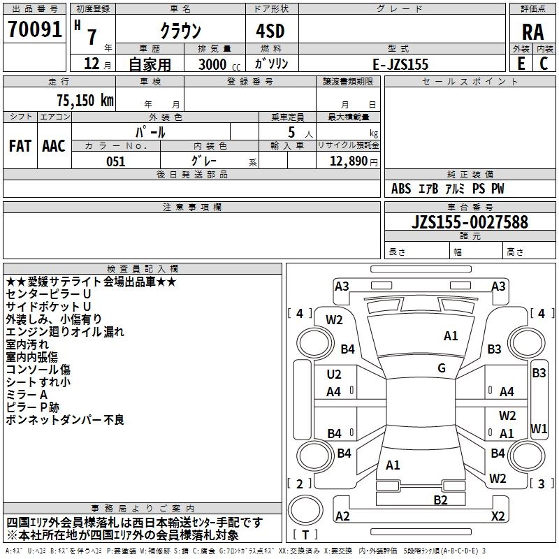 | ROYAL SALOON G | E-JZS155 | 2JZ-GE | FR | 4AT | 2997cc | 220ps(162kW)/5600rpm | AИ-95 | 4 030 000 | |