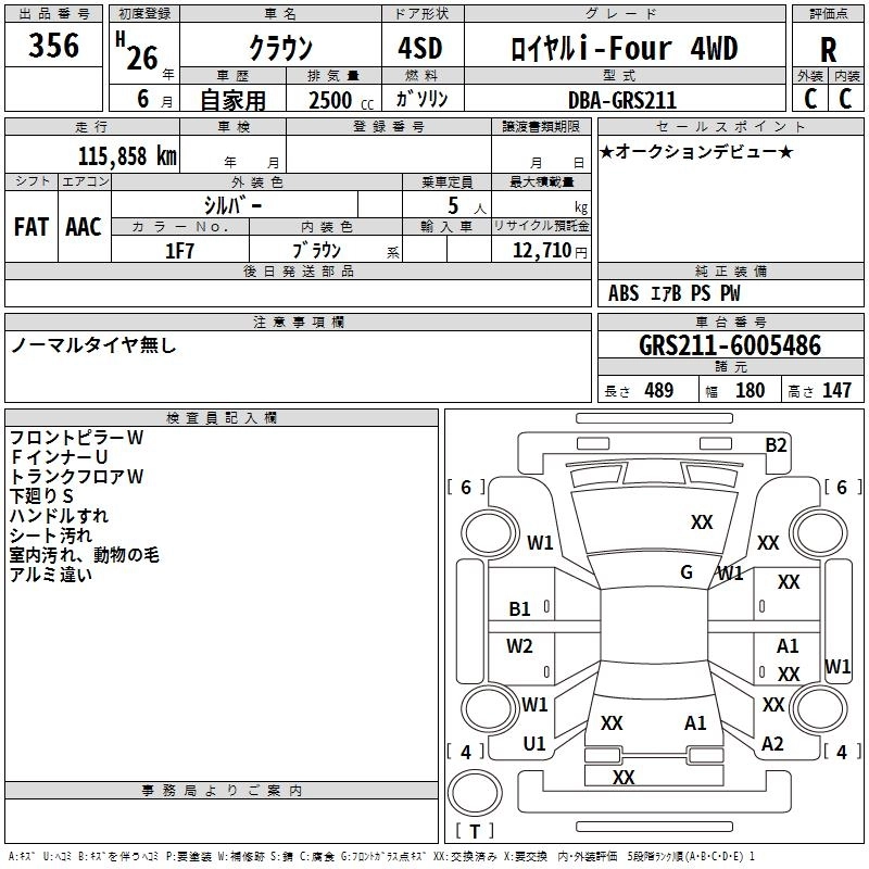 ROYAL I-FOUR DBA-GRS211 4GR-FSE Full-time 4WD 6AT 2499cc 203ps(149kW)/6400rpm AИ-92 3 908 572