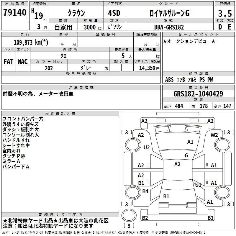 ROYAL SALOON PREMIUM EDITION DBA-GRS180 4GR-FSE FR 6AT 2499cc 215ps(158kW)/6400rpm AИ-95 4 084 500