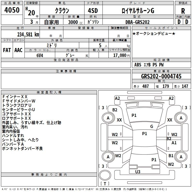 | ROYAL SALOON | DBA-GRS202 | 3GR-FSE | FR | 6AT | 2994cc | 256ps(188kW)/6200rpm | AИ-95 | 4 580 000 | |