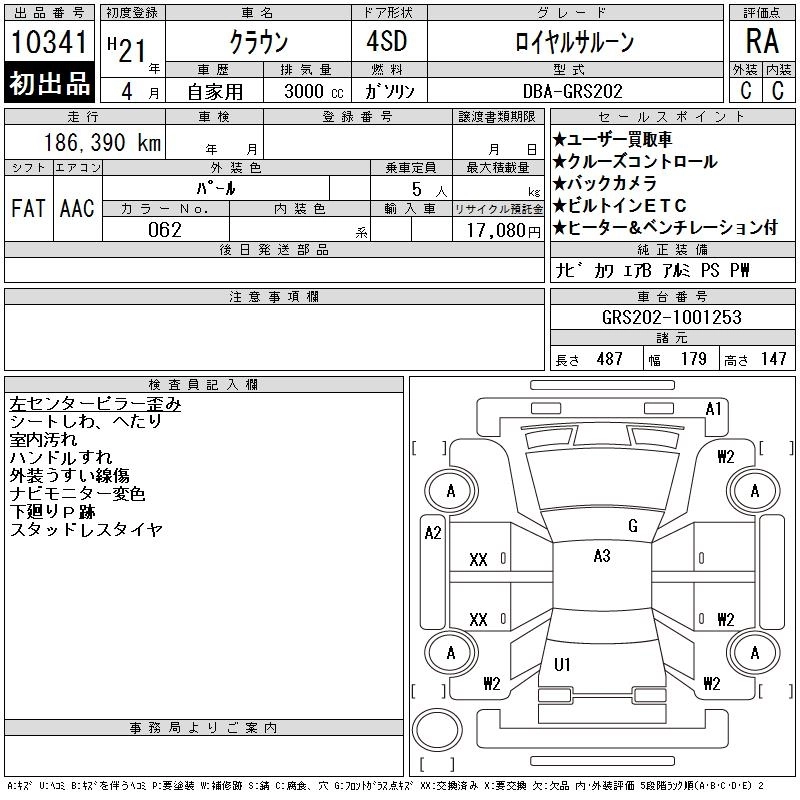 | 3.0 ROYAL SALOON ANNIVERSARY EDITION | DBA-GRS202 | 3GR-FSE | FR | 6AT | 2994cc | 256ps(188kW)/6200rpm | AИ-95 | 4 630 000 | |
