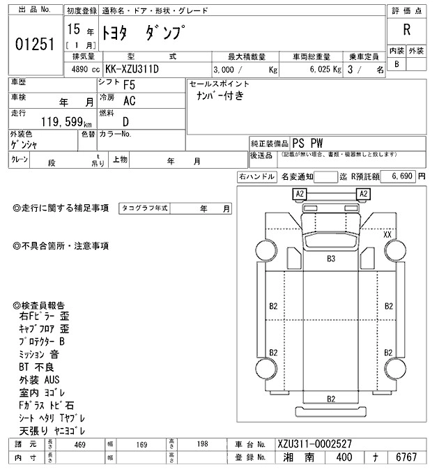 Статус выставлен на аукцион Лот 1251 Аукцион ARAI Oyama VT Дата аукциона 31.01.2026