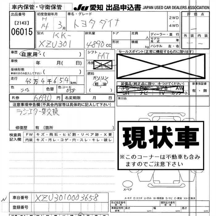 Статус выставлен на аукцион Лот 6015 Аукцион JU Aichi Дата аукциона 29.01.2026