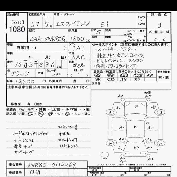 TOYOTA ESQUIRE 2015 г., лот № 1080