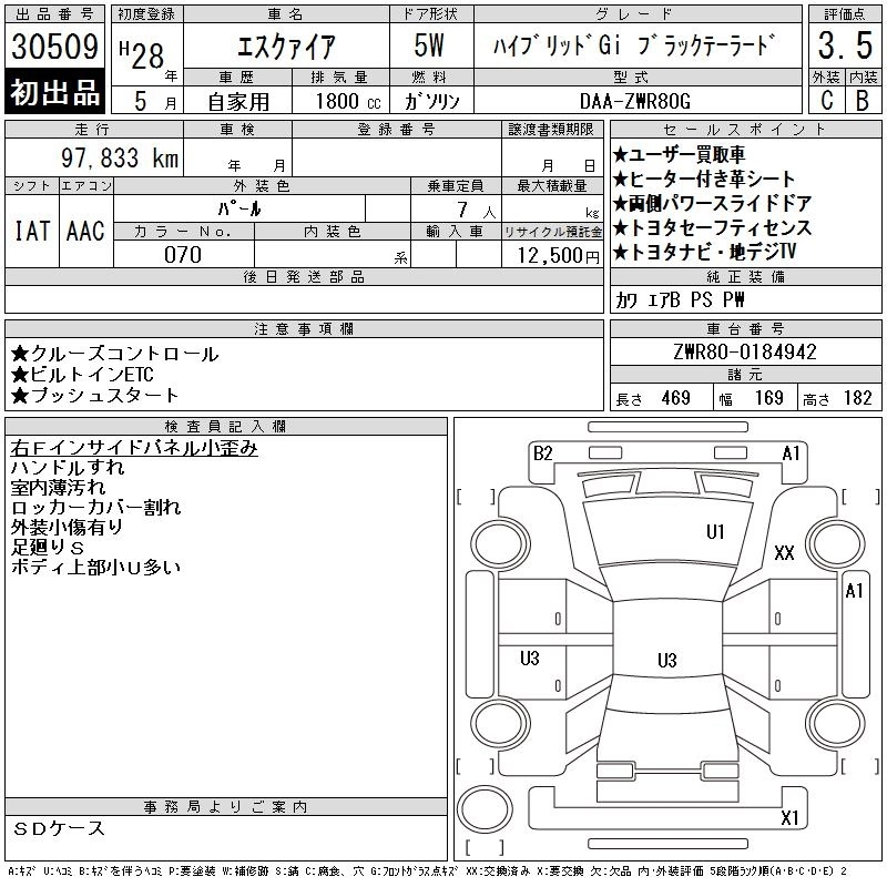 | HYBRID GI | DAA-ZWR80G | 2ZR-FXE | FF | CVT | 1797cc | 99ps(73kW)/5200rpm | AИ-92 | 3 255 709 | |