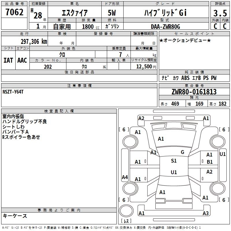 GI BLACK TAILORED DBA-ZRR85G 3ZR-FAE Full-time 4WD CVT 1986cc 152ps(112kW)/6100rpm AИ-92 3 130 037