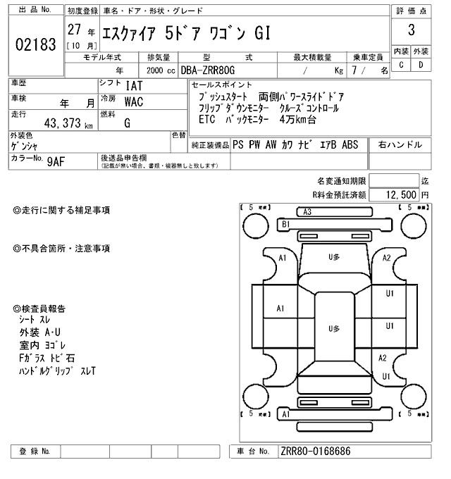 TOYOTA ESQUIRE 2015 г., лот № 2183