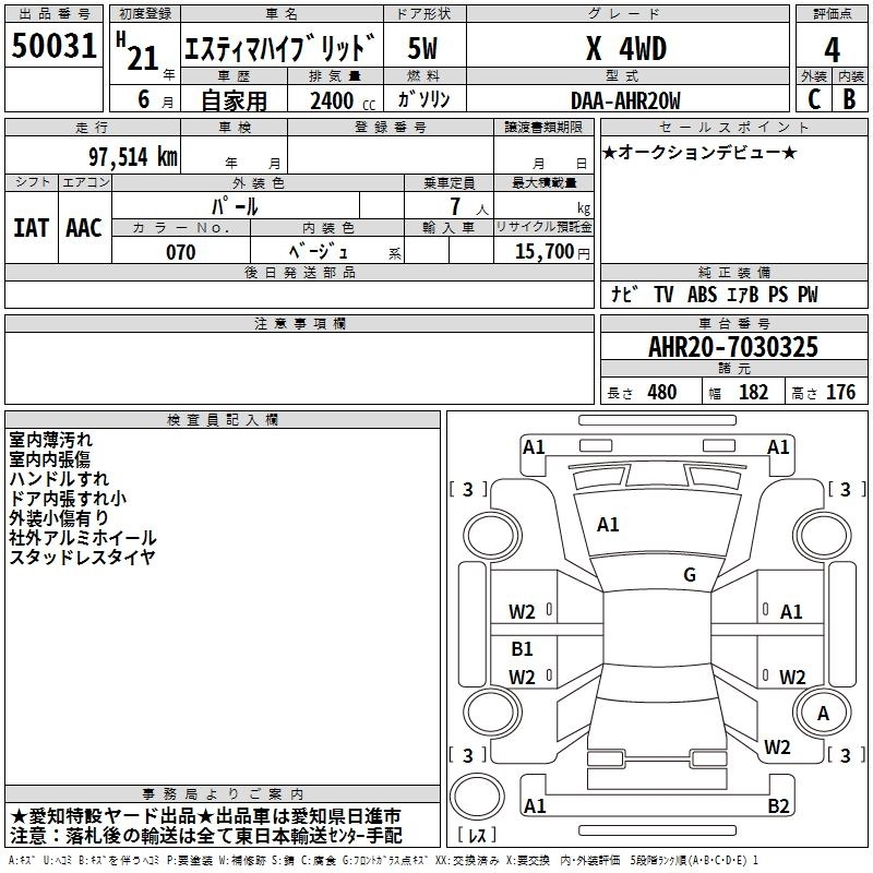 | G | DAA-AHR20W | 2AZ-FXE | Full-time 4WD | CVT | 2362cc | 150ps(110kW)/6000rpm | AИ-92 | 4 781 000 | |