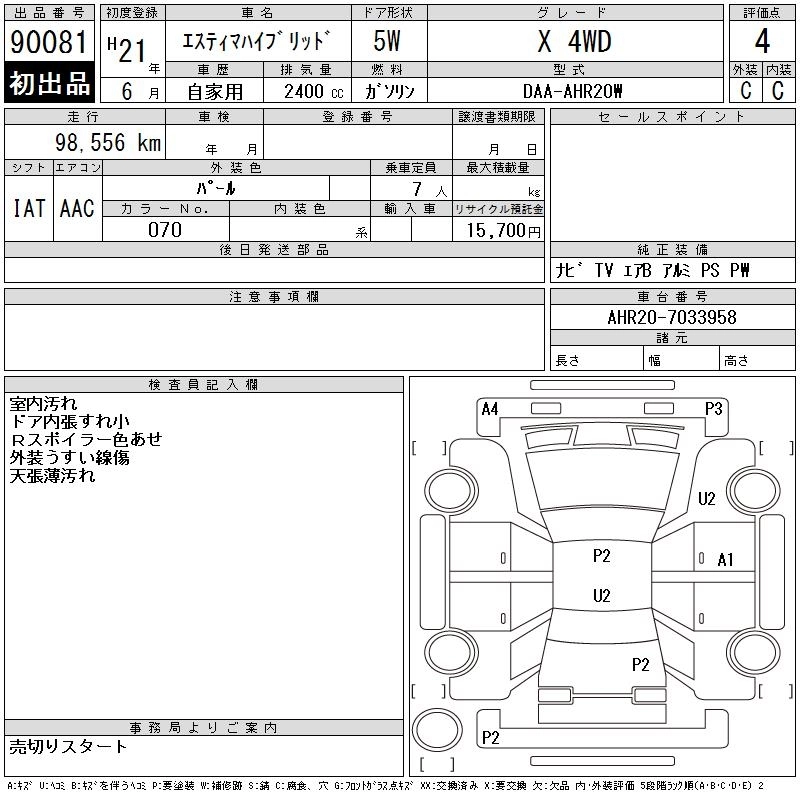 | X | DAA-AHR20W | 2AZ-FXE | Full-time 4WD | CVT | 2362cc | 150ps(110kW)/6000rpm | AИ-92 | 3 889 000 | |