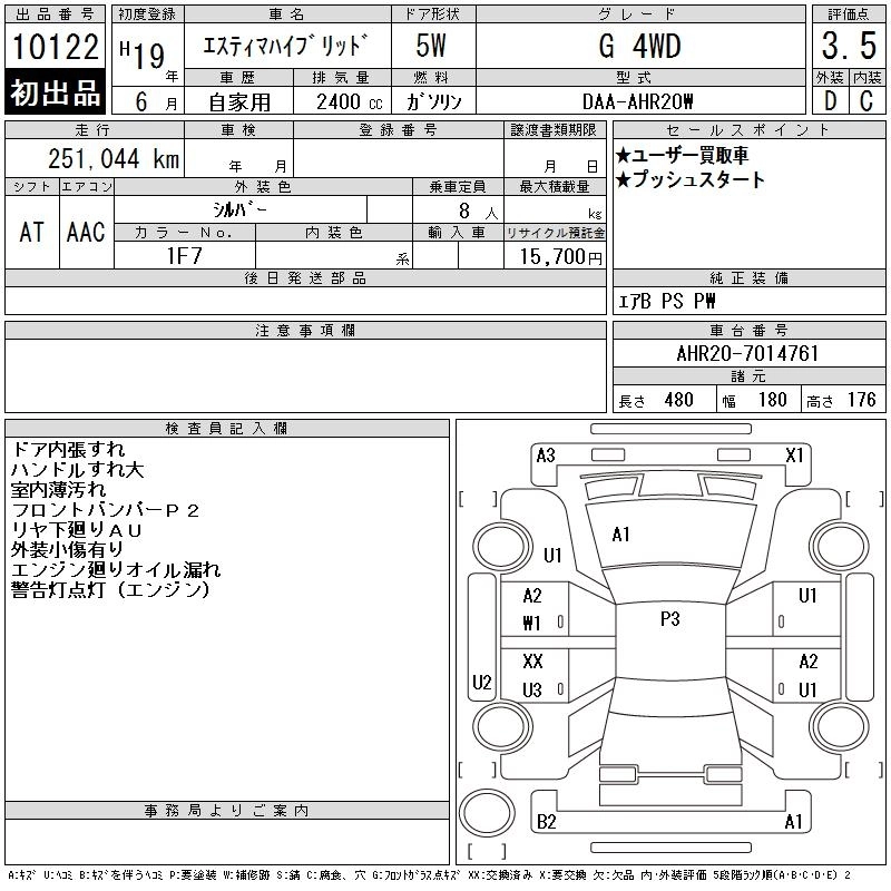 Год выпуска2007 Пробег 251 000 км КузовAHR20W КомплектацияG 4WD