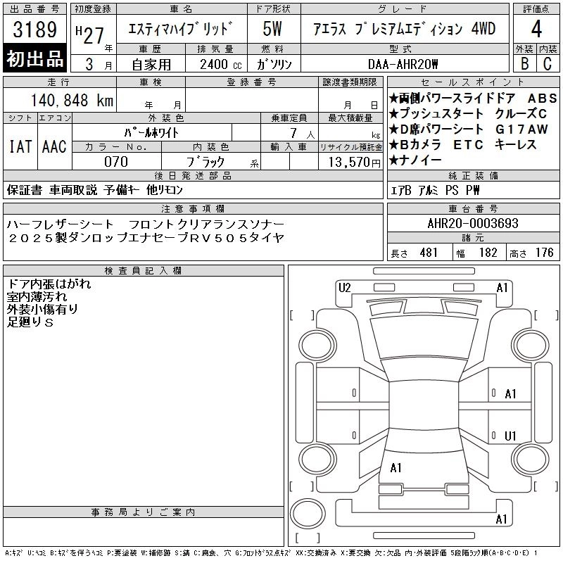 TOYOTA ESTIMA HYBRID 2015 г., лот № 3189