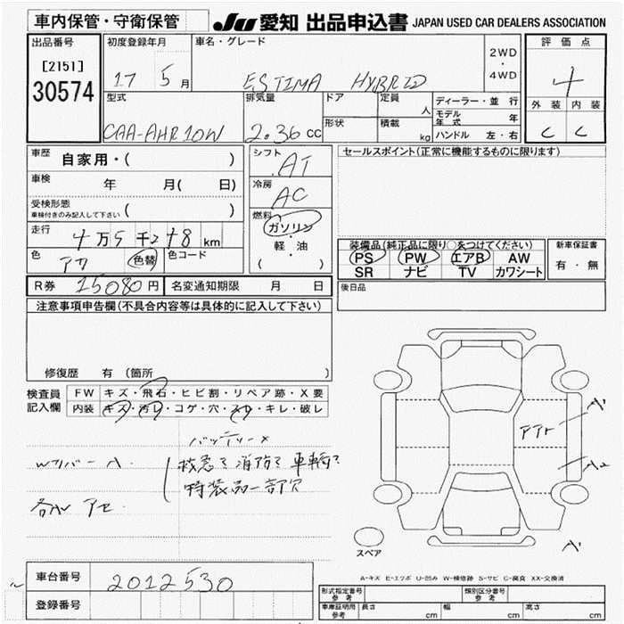 TOYOTA ESTIMA HYBRID 2005 г., лот № 30574