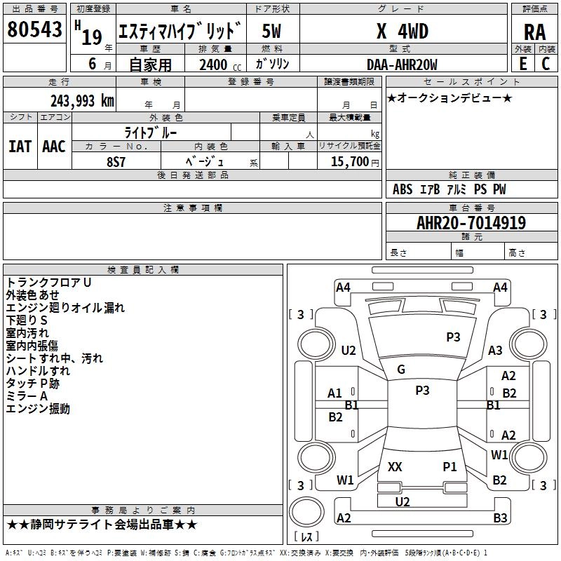 | X | DAA-AHR20W | 2AZ-FXE | Full-time 4WD | CVT | 2362cc | 150ps(110kW)/6000rpm | AИ-92 | 3 633 000 |