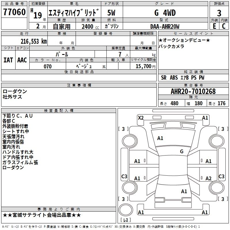 TOYOTA ESTIMA HYBRID 2007 г., лот № 77060