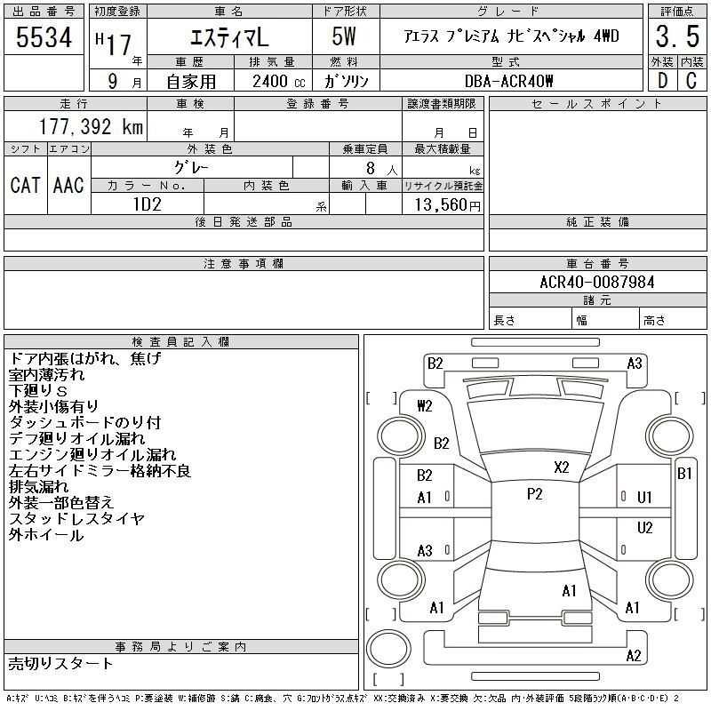 TOYOTA ESTIMA L 2005 г., лот № 5534
