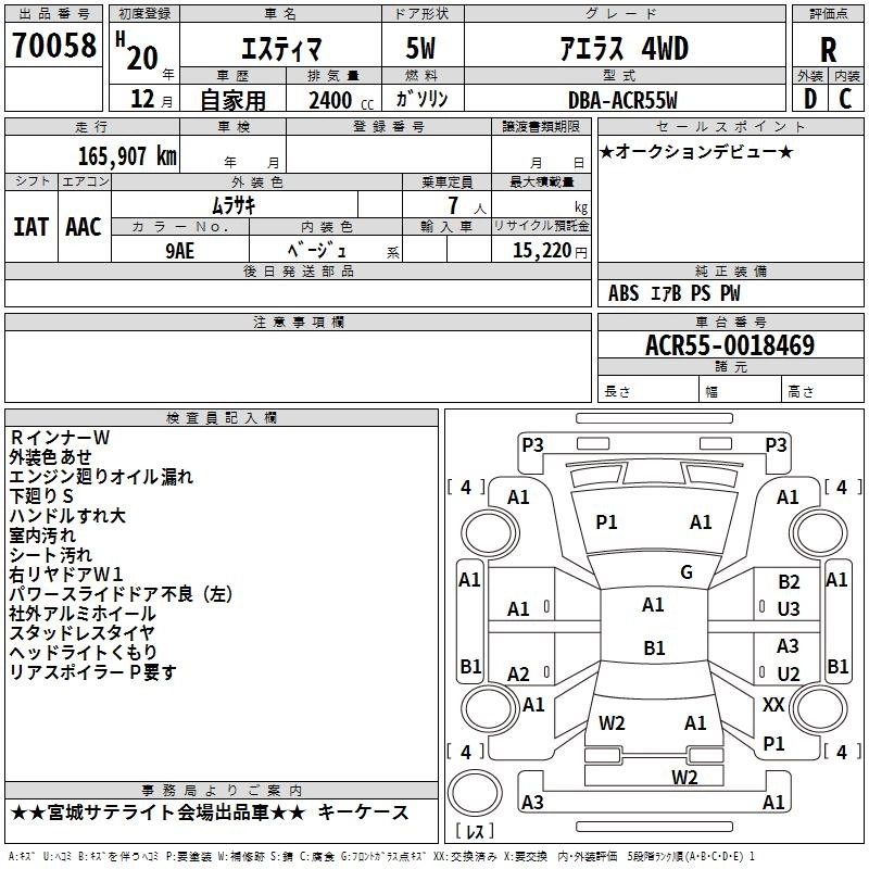 | AERAS | DBA-ACR50W | 2AZ-FE | FF | CVT | 2362cc | 170ps(125kW)/6000rpm | AИ-92 | 2 920 000 | |