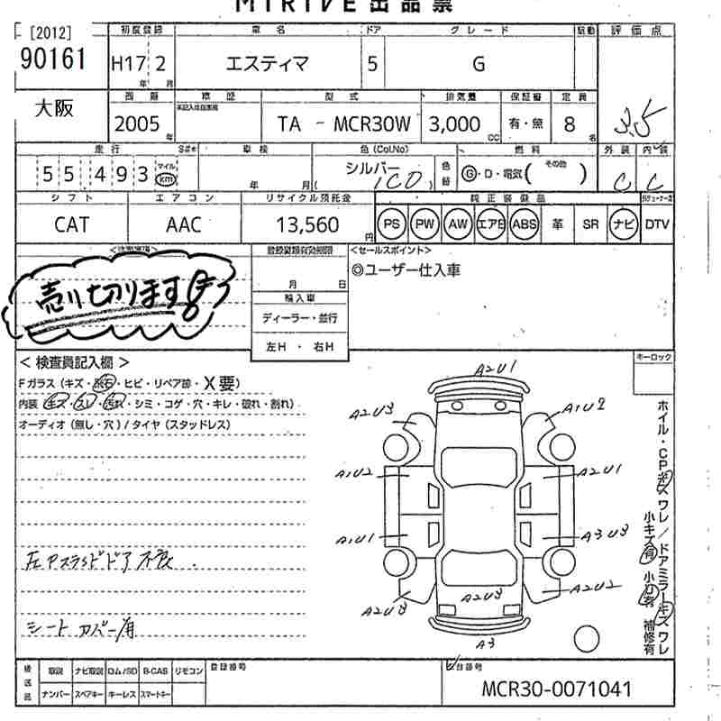 TOYOTA ESTIMA 2005 г., лот № 90161