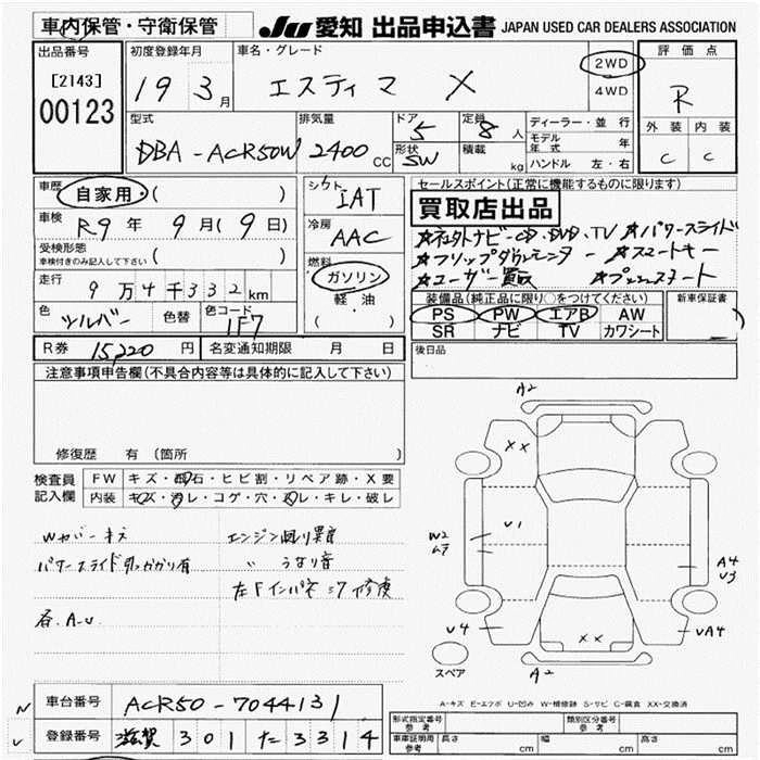 | AERAS | DBA-ACR50W | 2AZ-FE | FF | CVT | 2362cc | 170ps(125kW)/6000rpm | AИ-92 | 3 030 000 | |