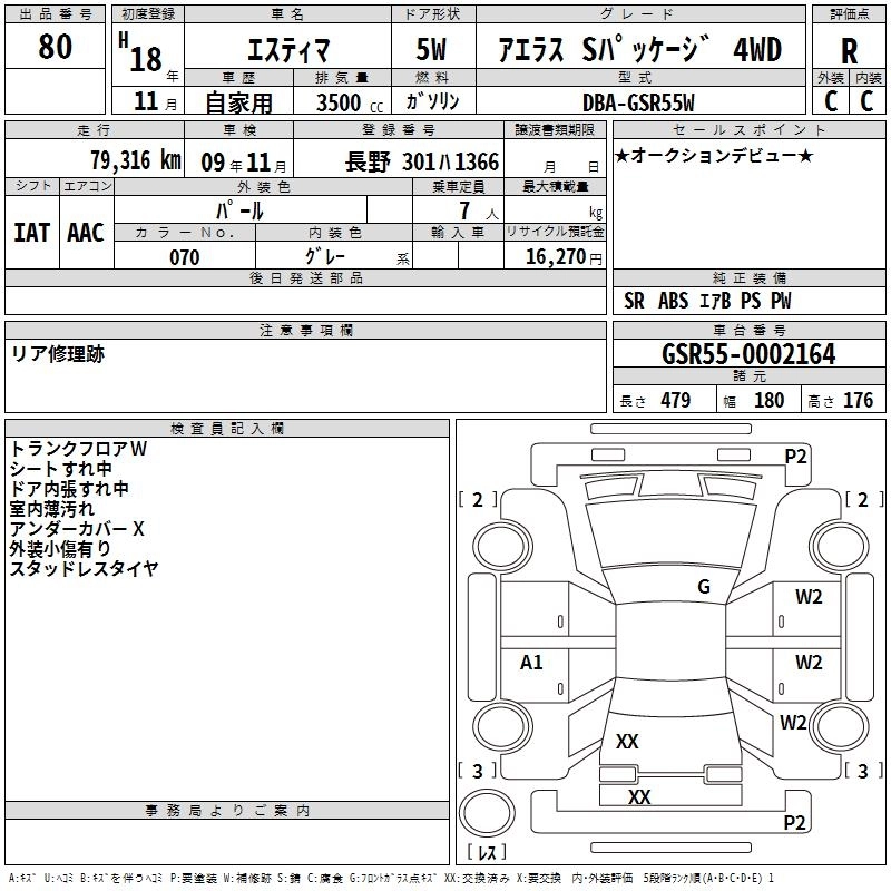| AERAS | DBA-GSR50W | 2GR-FE | FF | 6AT | 3456cc | 280ps(206kW)/6200rpm | AИ-95 | 3 255 000 | |